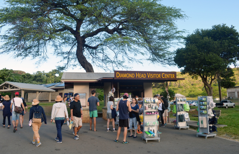 The Diamond Head Visitor Center is a partnership between the State Park Division and Pacific Historic Parks. It is open from 7 am to 3:30 pm and is located within the Diamond Head crater at the beginning of the hiking trail. The park is closed on Dec 25th and Jan 1st.